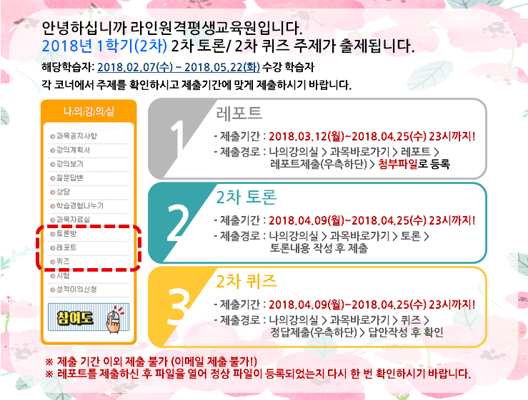 [2018³â 1Çбâ(2Â÷)] 2Â÷ÄûÁî, 2Â÷Åä·Ð ¾È³»ÀÔ´Ï´Ù.