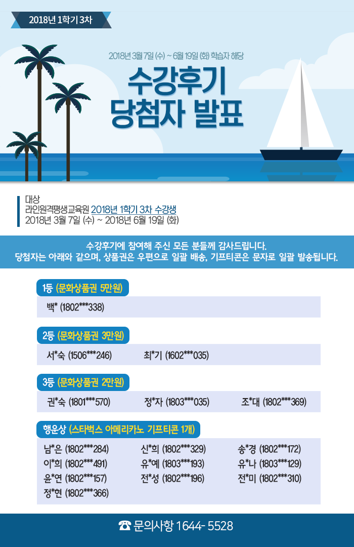 [¹ßÇ¥] 2018³â 1Çбâ(3Â÷) ¼ö°Èıâ À̺¥Æ® ´ç÷ÀÚ ¹ßÇ¥!!