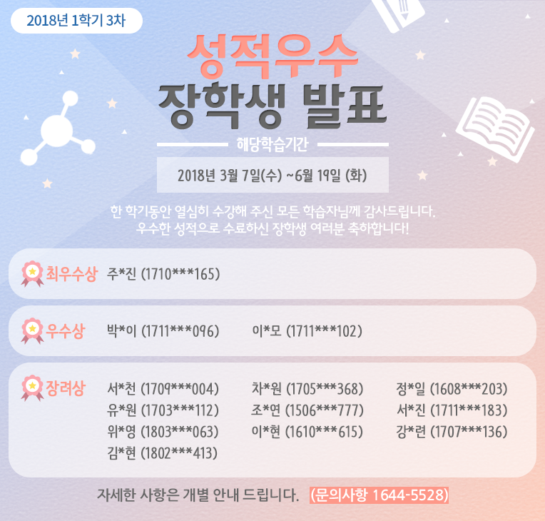 [¹ßÇ¥] 2018³â 1Çбâ(3Â÷) ¼ºÀû¿ì¼ö ÀåÇлý ¹ßÇ¥!!