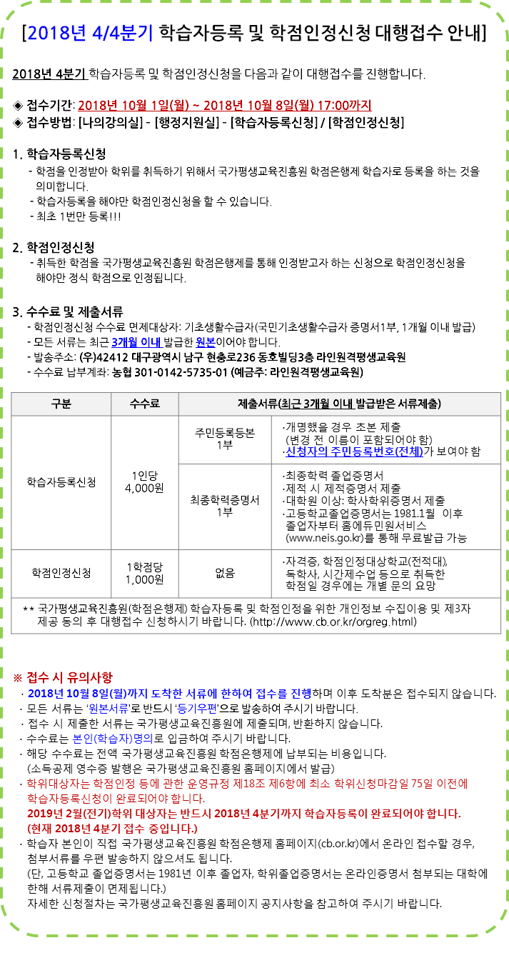 [Á¢¼ö¾È³»]2018³â 4ºÐ±â ÇнÀÀÚµî·Ï ¹× ÇÐÁ¡ÀÎÁ¤½Åû ´ëÇàÁ¢¼ö ¾È³»