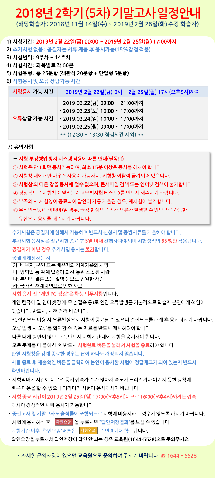 [¾È³»] 2018³â 2Çбâ(5Â÷) ±â¸»°í»ç ¾È³»ÀÔ´Ï´Ù.