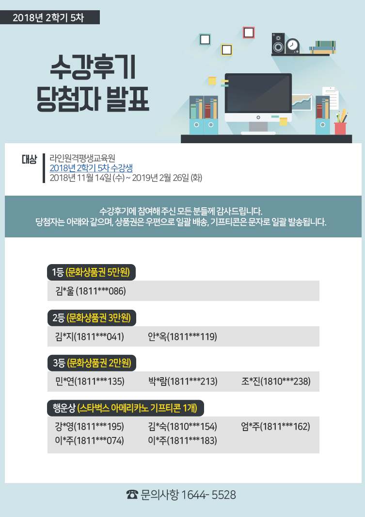 [¹ßÇ¥] 2018³â 2Çбâ(5Â÷) ¼ö°Èıâ À̺¥Æ® ´ç÷ÀÚ ¹ßÇ¥!!