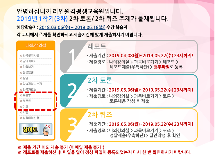 [2019³â 1Çбâ(3Â÷)] 2Â÷ÄûÁî, 2Â÷Åä·Ð ¾È³»ÀÔ´Ï´Ù.
