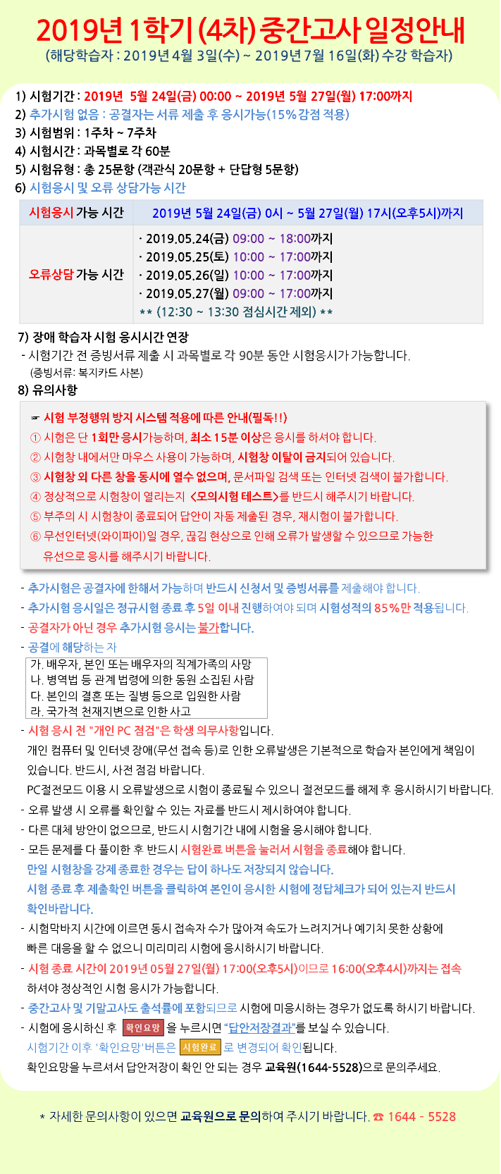 [¾È³»] 2019³â 1Çбâ(4Â÷) Áß°£°í»ç ¾È³»ÀÔ´Ï´Ù.