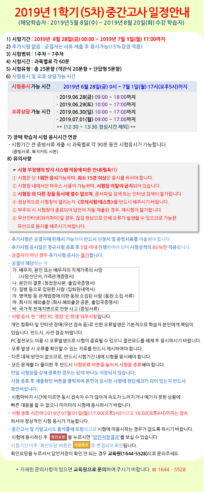 [¾È³»] 2019³â 1Çбâ(5Â÷) Áß°£°í»ç ¾È³»ÀÔ´Ï´Ù.