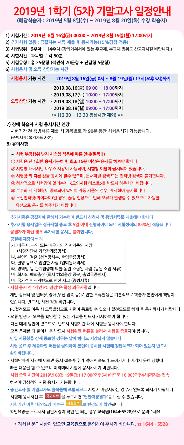 [¾È³»] 2019³â 1Çбâ(5Â÷) ±â¸»°í»ç ¾È³»ÀÔ´Ï´Ù.