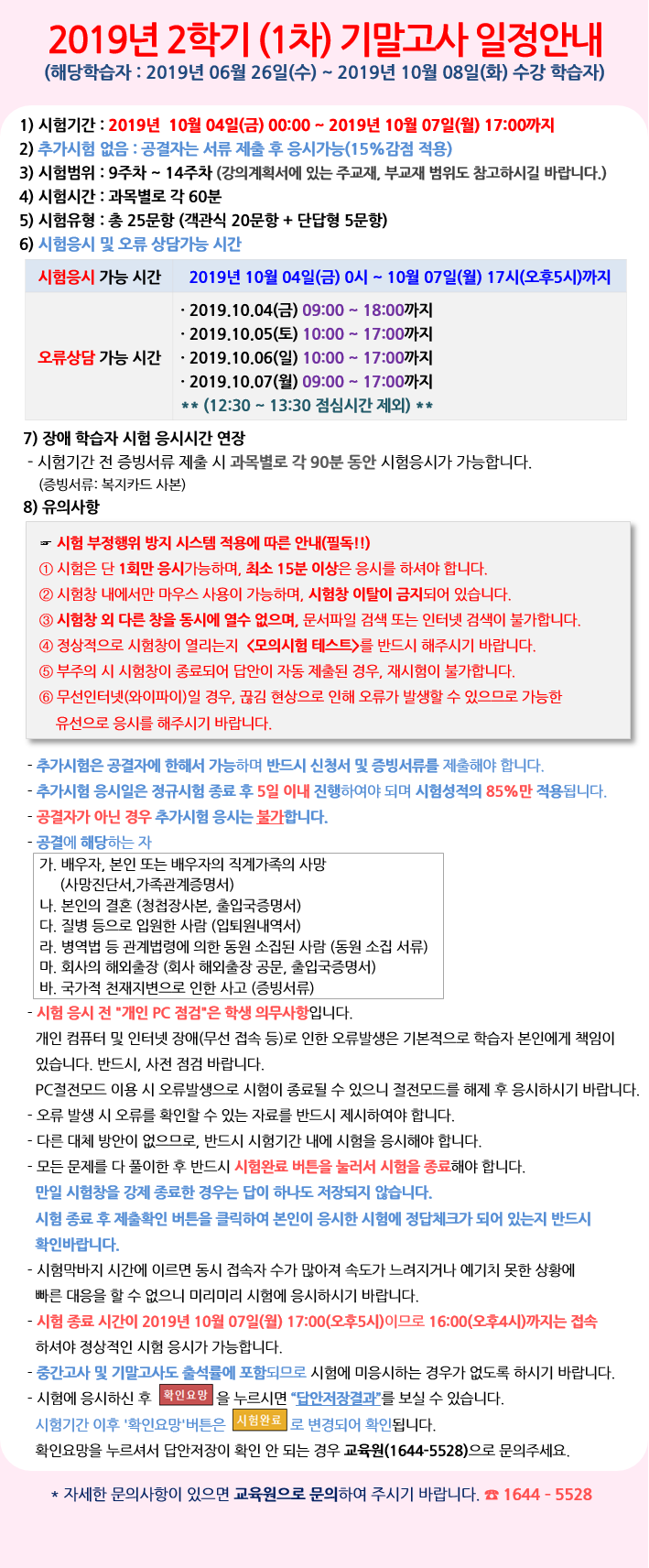 [¾È³»] 2019³â 2Çбâ(1Â÷) ±â¸»°í»ç ¾È³»ÀÔ´Ï´Ù.