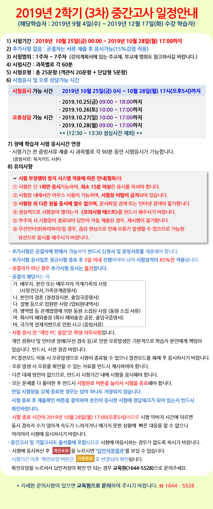 [¾È³»] 2019³â 2Çбâ(3Â÷) Áß°£°í»ç ¾È³»ÀÔ´Ï´Ù.