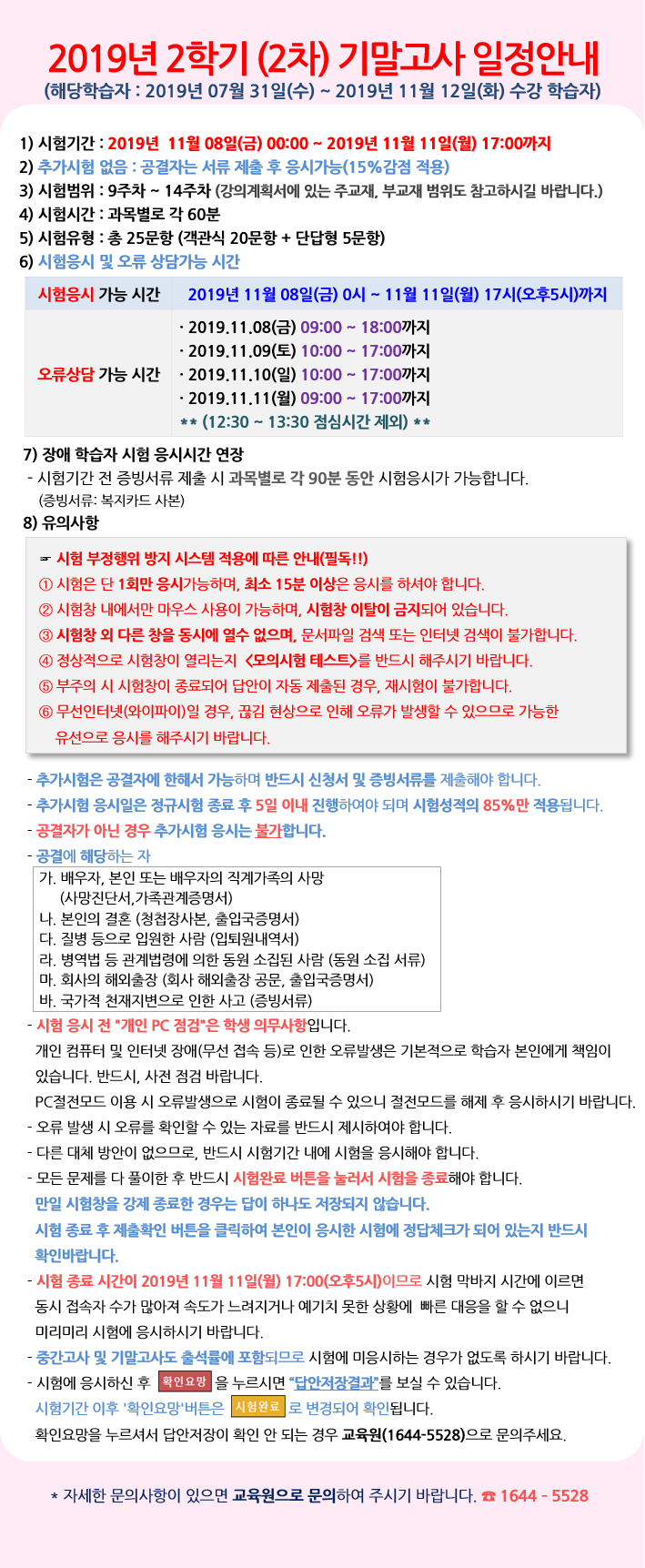 [¾È³»] 2019³â 2Çбâ(2Â÷) ±â¸»°í»ç ¾È³»ÀÔ´Ï´Ù.