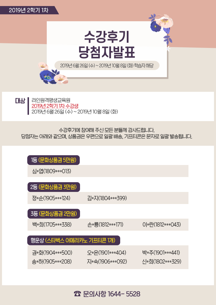 [¹ßÇ¥] 2019³â 2Çбâ(1Â÷) ¼ö°Èıâ À̺¥Æ® ´ç÷ÀÚ ¹ßÇ¥!!