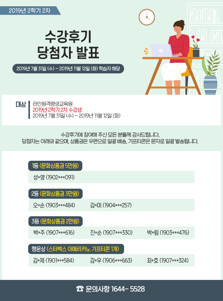 [¹ßÇ¥] 2019³â 2Çбâ(2Â÷) ¼ö°Èıâ À̺¥Æ® ´ç÷ÀÚ ¹ßÇ¥!!