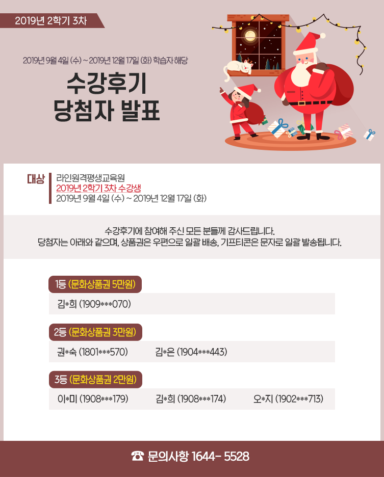 [¹ßÇ¥] 2019³â 2Çбâ(3Â÷) ¼ö°Èıâ À̺¥Æ® ´ç÷ÀÚ ¹ßÇ¥!!