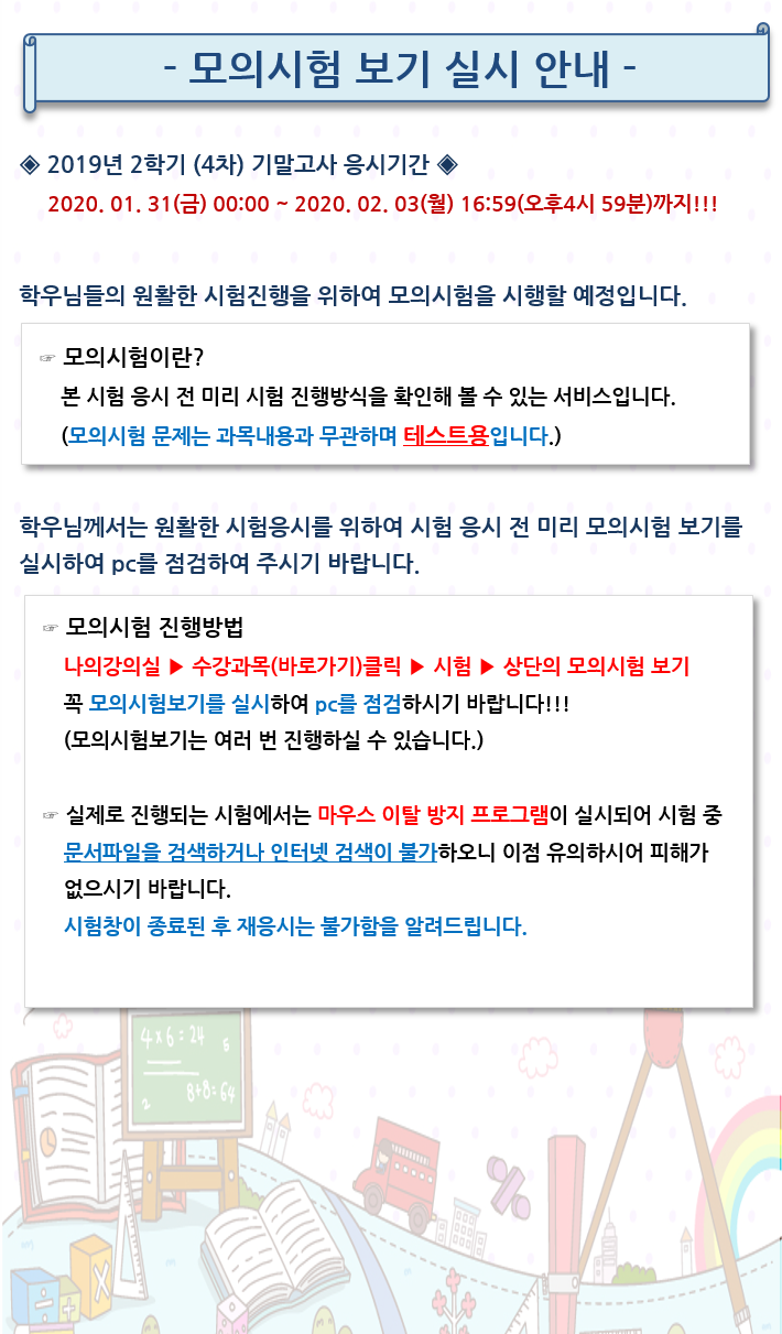 [¾È³»] ±â¸»°í»ç ÀÀ½Ã Àü ¸ðÀǽÃÇè ¾È³»ÀÔ´Ï´Ù.
