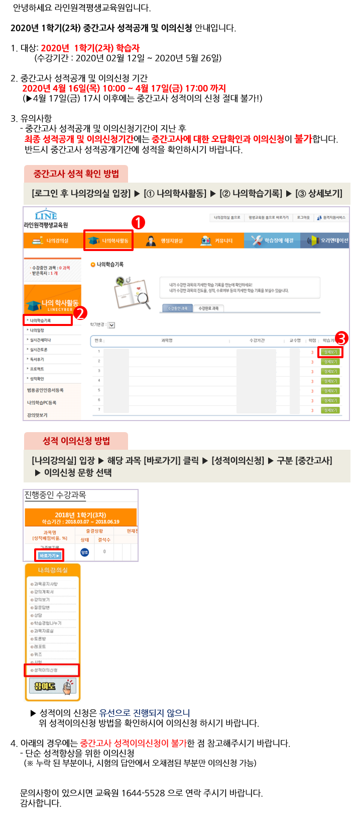 [¾È³»] 2020³â 1Çбâ(2Â÷) Áß°£°í»ç ¼ºÀû°ø°³ ¹× ÀÌÀǽÅû ¾È³»ÀÔ´Ï´Ù.