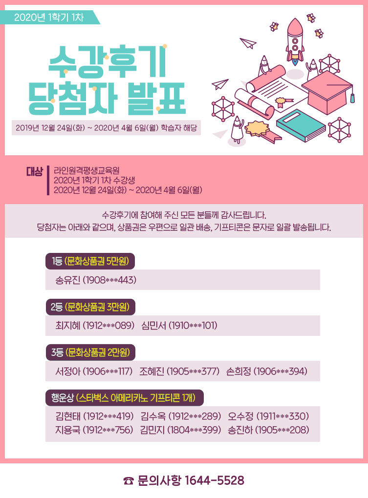 [¹ßÇ¥] 2020³â 1Çбâ(1Â÷) ¼ö°Èıâ À̺¥Æ® ´ç÷ÀÚ ¹ßÇ¥!!