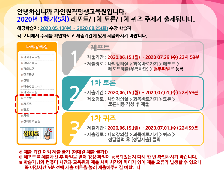 [2020³â 1Çбâ (5Â÷)] ·¹Æ÷Æ®, 1Â÷ÄûÁî, 1Â÷Åä·Ð ¾È³»ÀÔ´Ï´Ù.