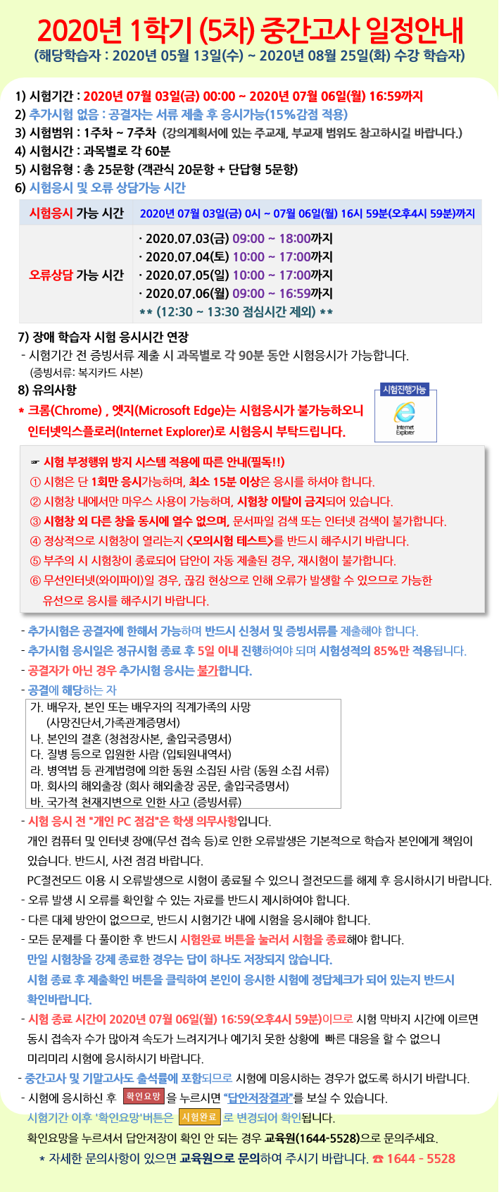 [¾È³»] 2020³â 1Çбâ(5Â÷) Áß°£°í»ç ¾È³»ÀÔ´Ï´Ù.