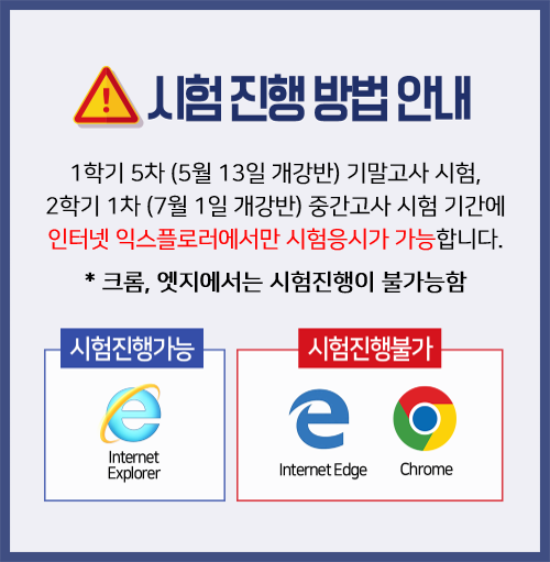 [¾È³»] 2020³â 1Çбâ(5Â÷) ±â¸»°í»ç, 2020³â 2Çбâ(1Â÷) Áß°£°í»ç ½ÃÇè ÁøÇà ¹æ¹ý ¾È³» °øÁöÀÔ´Ï´Ù.