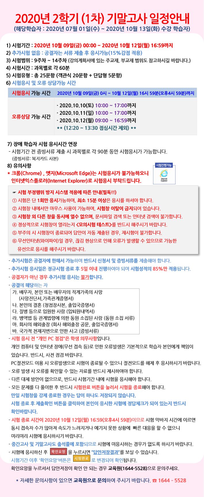 [¾È³»] 2020³â 2Çбâ(1Â÷) ±â¸»°í»ç ¾È³»ÀÔ´Ï´Ù.