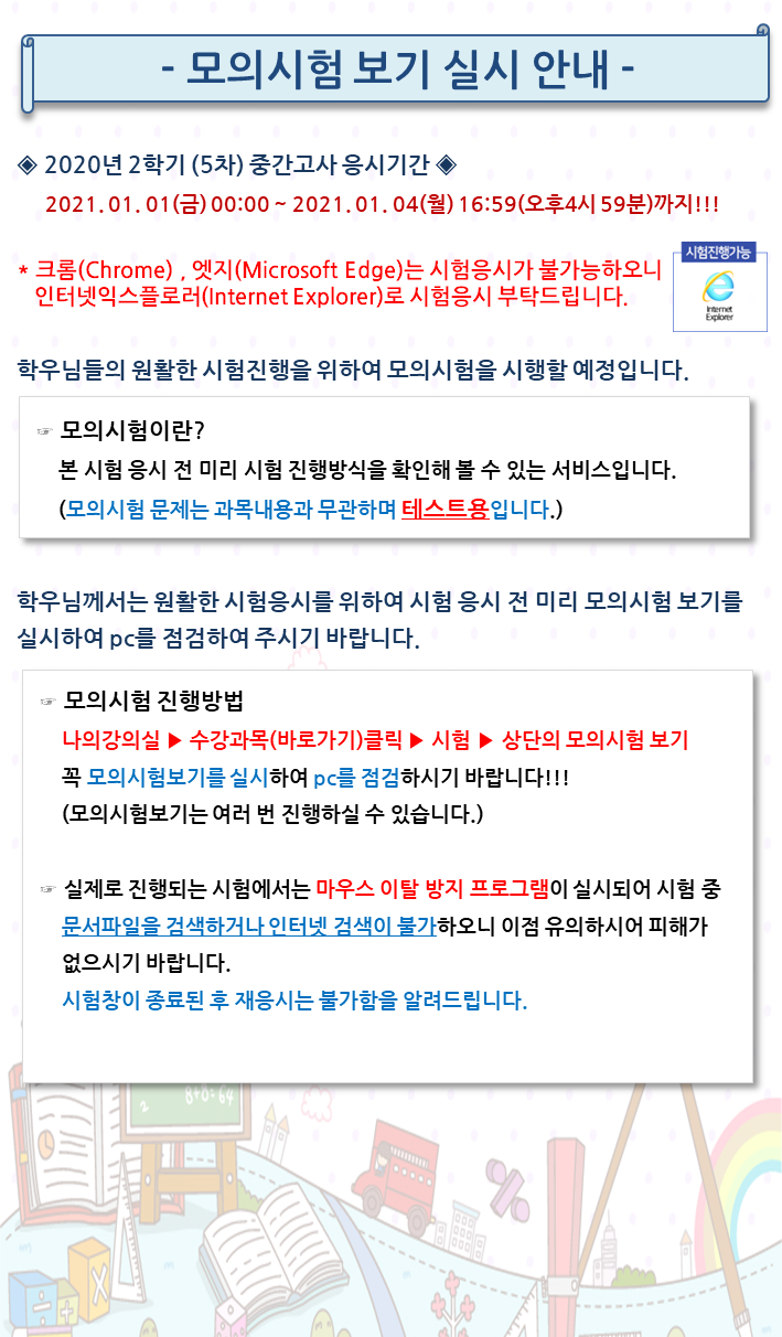 [2020³â 2Çбâ(5Â÷)] Áß°£°í»ç ÀÀ½Ã Àü ¸ðÀǽÃÇè ¾È³»ÀÔ´Ï´Ù.
