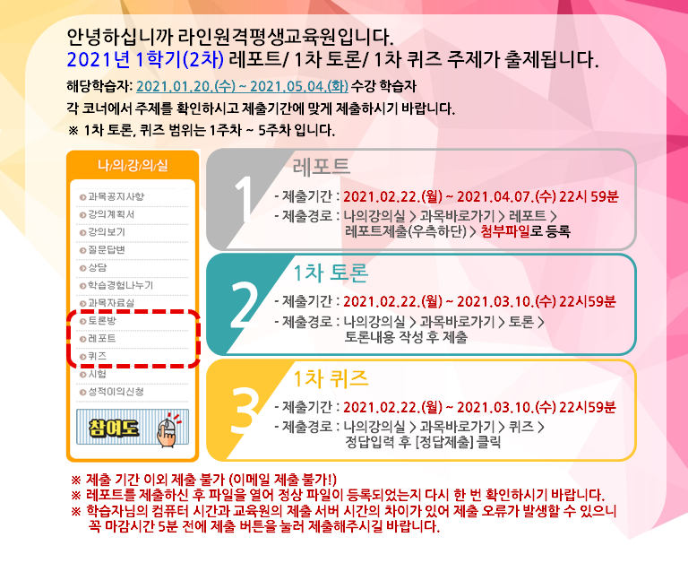 [2021³â 1Çбâ(2Â÷)] ·¹Æ÷Æ®, 1Â÷ÄûÁî, 1Â÷Åä·Ð ¾È³»ÀÔ´Ï´Ù.