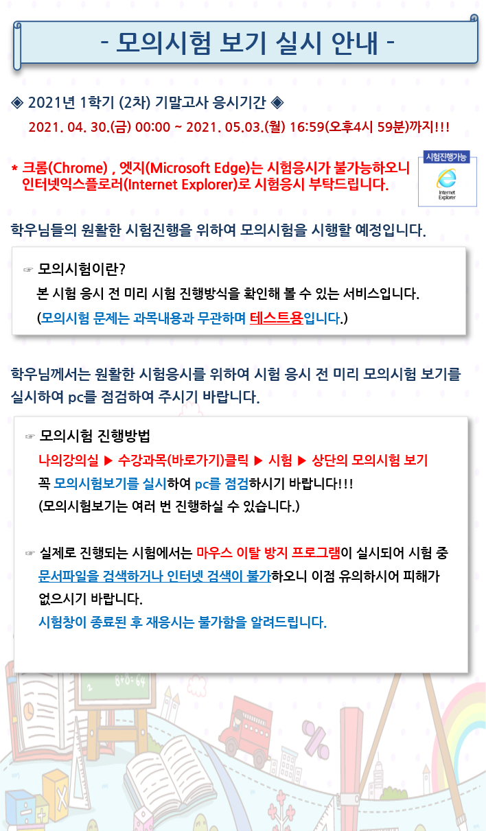 [2021³â 1Çбâ(2Â÷)] ±â¸»°í»ç ÀÀ½Ã Àü ¸ðÀǽÃÇè ¾È³» °øÁöÀÔ´Ï´Ù.
