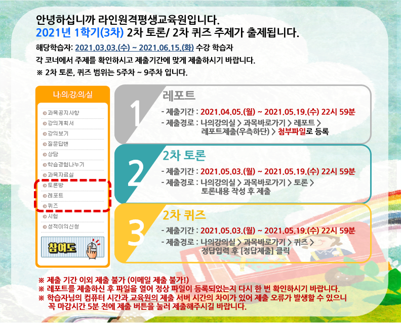[2021³â 1Çбâ(3Â÷)] 2Â÷ÄûÁî, 2Â÷Åä·Ð ¾È³»ÀÔ´Ï´Ù.