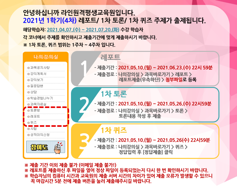 [2021³â 1Çбâ(4Â÷)] ·¹Æ÷Æ®, 1Â÷ÄûÁî, 1Â÷Åä·Ð ¾È³»ÀÔ´Ï´Ù.