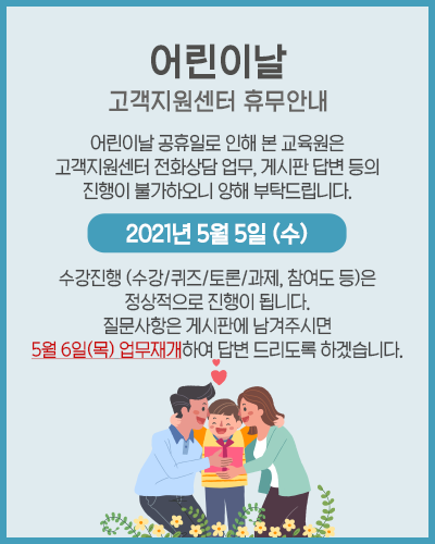[¾È³»] ¾î¸°À̳¯ ´ëü°øÈÞÀÏ ÈÞ¹« ¾È³»ÀÔ´Ï´Ù.
