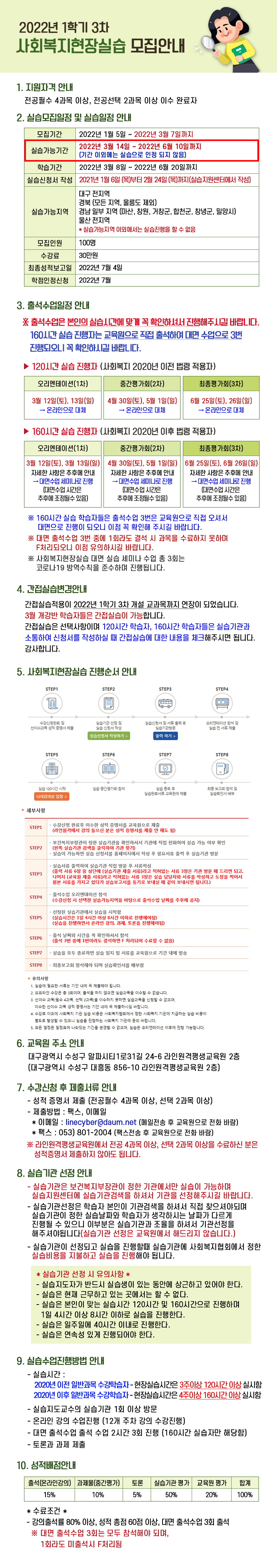 [¾È³»] 2022³â 1Çбâ 3Â÷ »çȸº¹ÁöÇöÀå½Ç½À ¸ðÁý ¾È³»ÀÔ´Ï´Ù.
