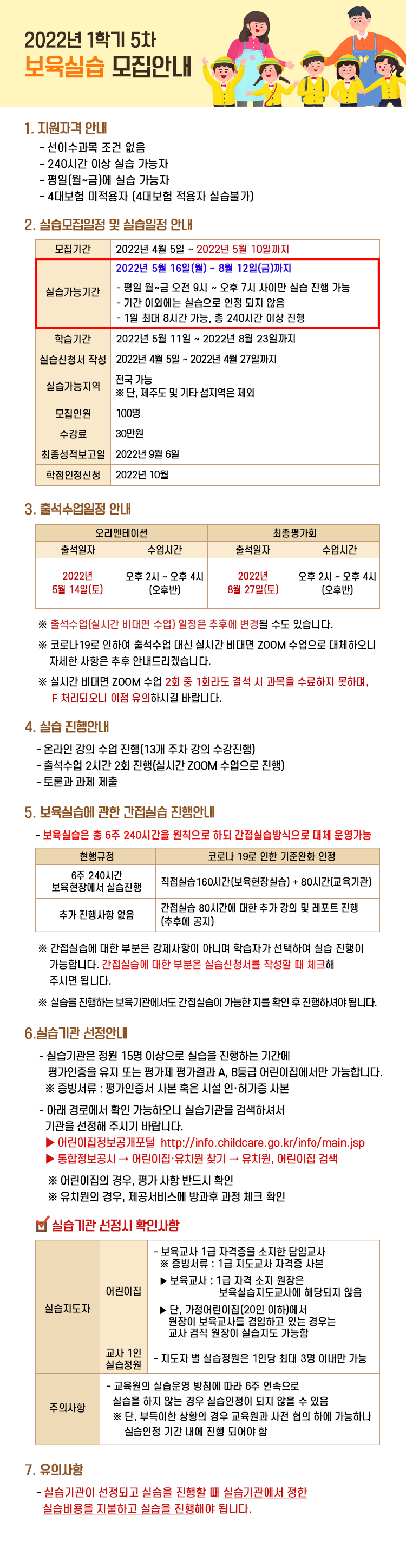 [¾È³»] 2022³â 1Çбâ 5Â÷ º¸À°½Ç½À ¸ðÁý ¾È³»ÀÔ´Ï´Ù.